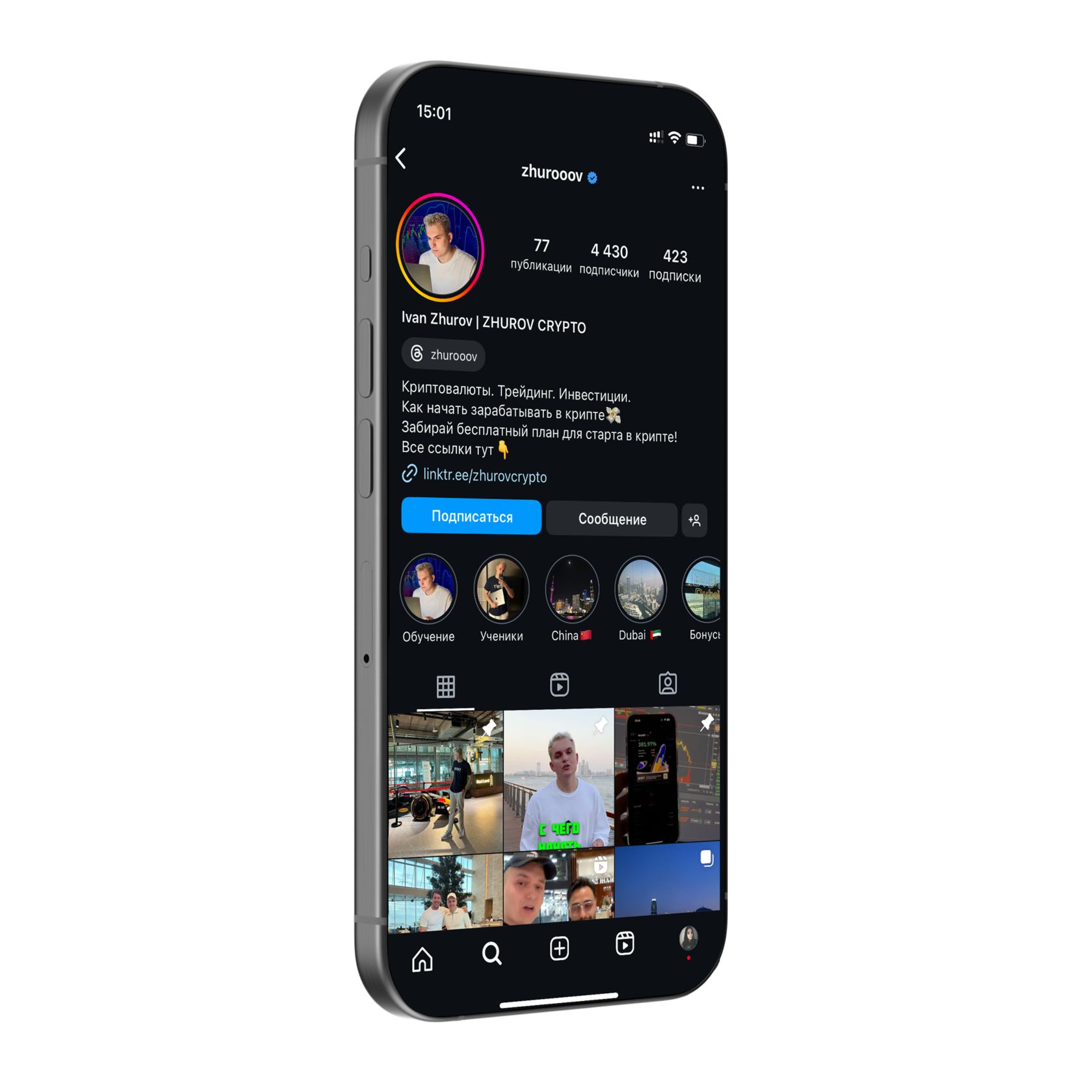 Я транслирую свои результаты через жизнь. Те, кто подписаны на мой Instagram, знают, что я постоянно путешествую по всему миру, посещаю лучшие мероприятия, посвященные криптовалюте, и общаюсь с топами рынка. Я всегда нахожусь в эпицентре событий и в курсе всех новых трендов в крипторынке.